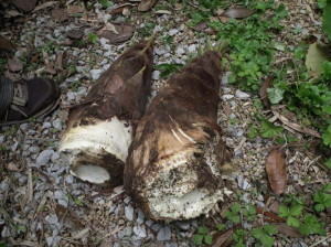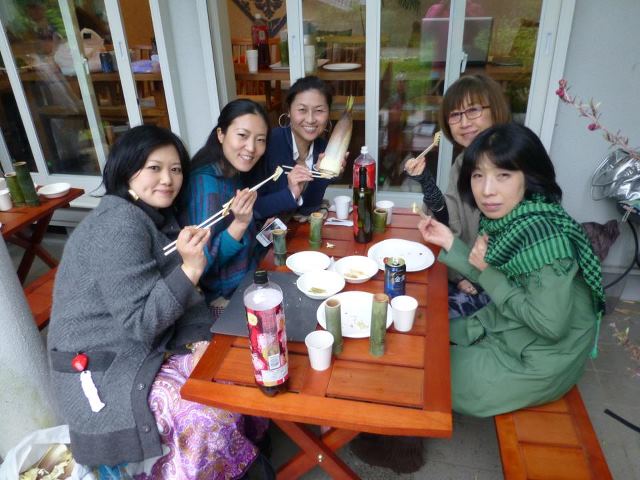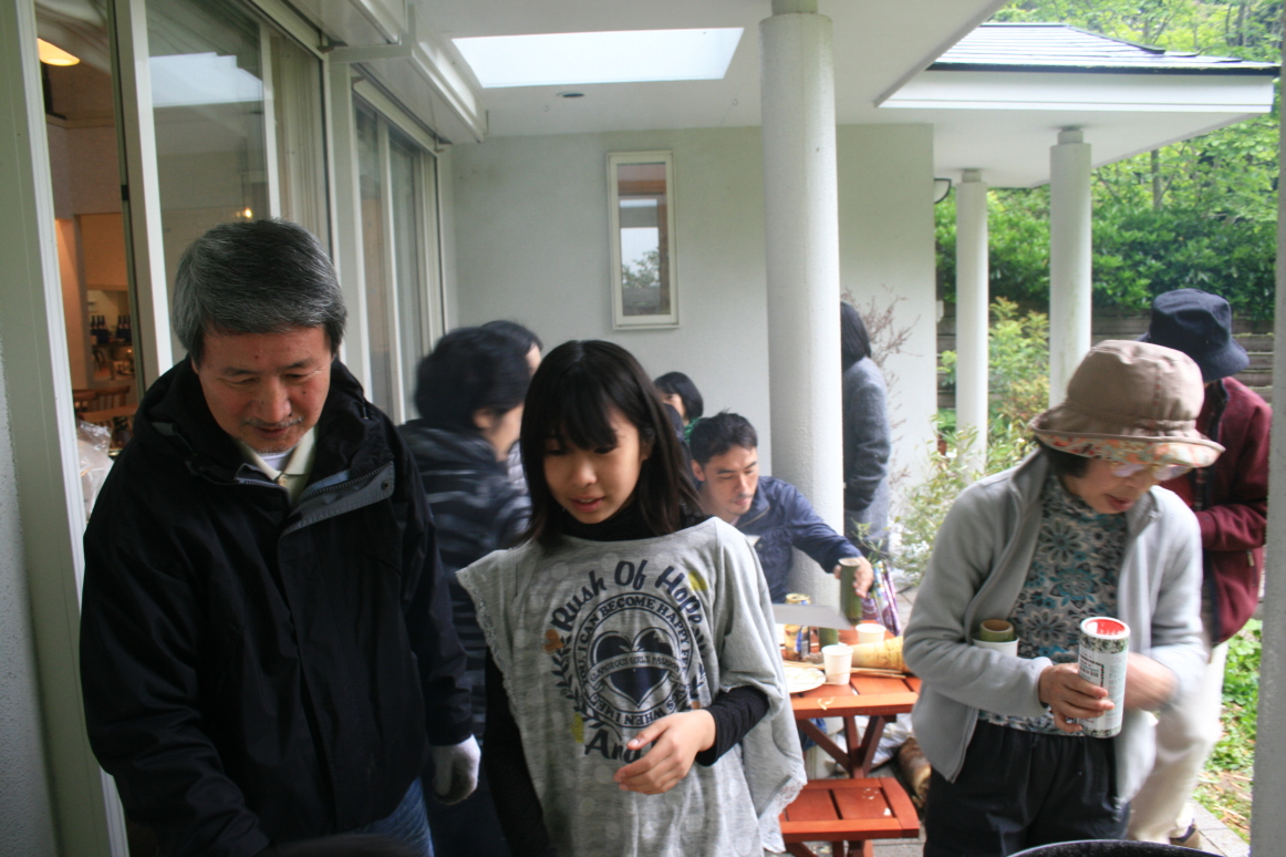 | 今日は曇りで少し肌寒い一日でした。鎌倉まつりと選挙が重なった週末で駅前も混んでいる感じがします。参加者は5名でした。 歩いて瑞泉寺へ、向かいの山には藤の花がきれいに咲いています。外の音がほとんど聞こえず、しずかな中で鶯の声がひときわ 響き渡っていました。 竹の子狩りは、ベリーダンスのグループの方や元気な子供たちの参加もあり、賑やかに竹の子狩りを楽しみました。バーベキュー の頃には少し雨が降ってきましたが、軒下で賑やかに楽しむことができました。 |
